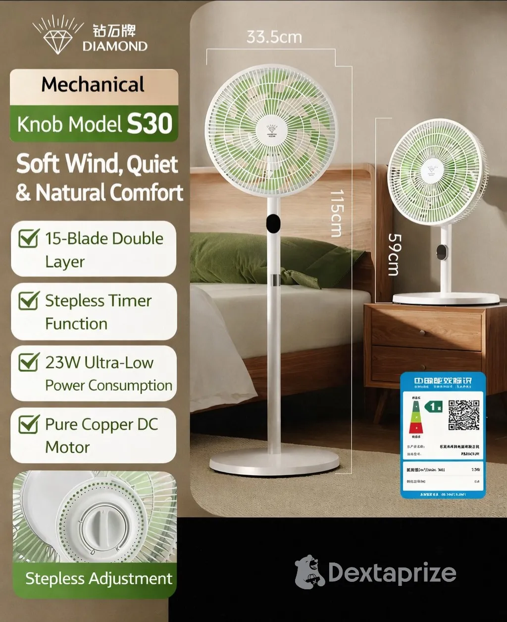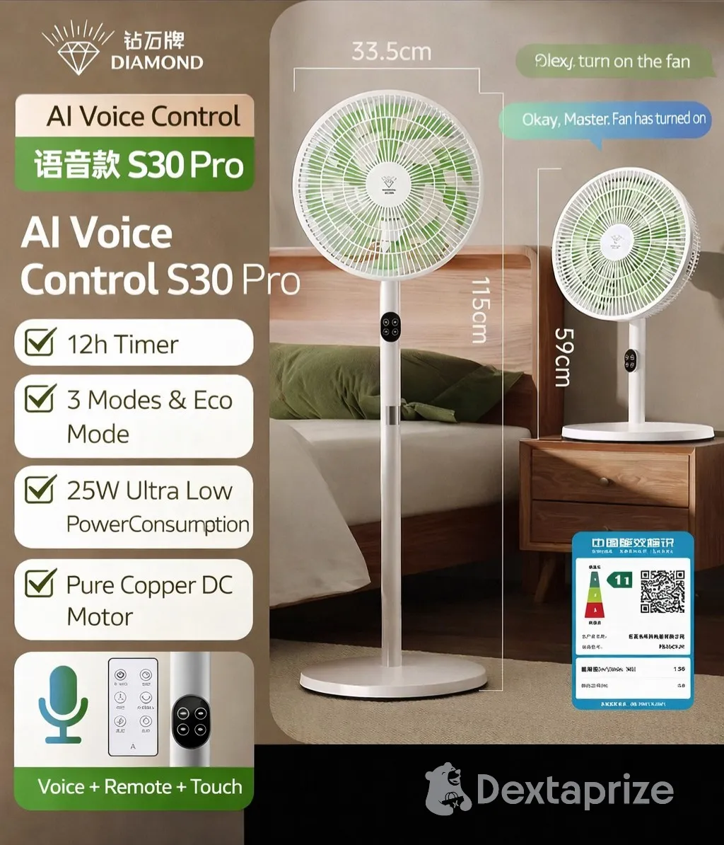 Shop the Diamond S30 DC Inverter Fan (2026 model) with ultra-low power consumption, 24 speed levels, remote and AI voice control. Perfect for inverter and solar use, delivering quiet and efficient cooling for homes and offices.