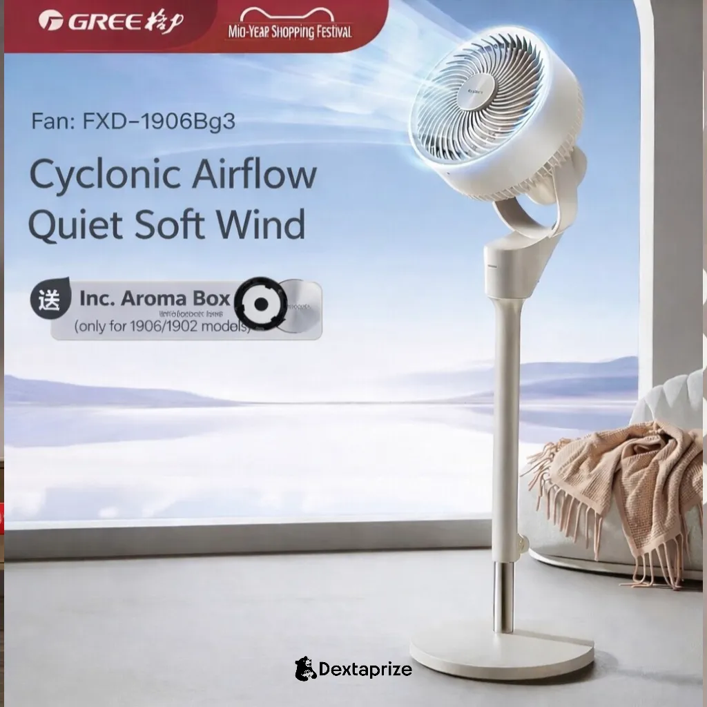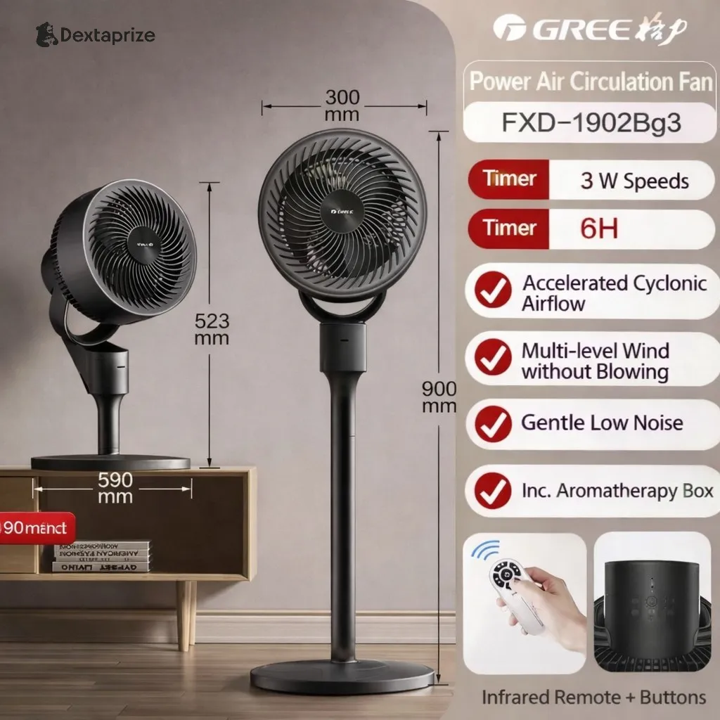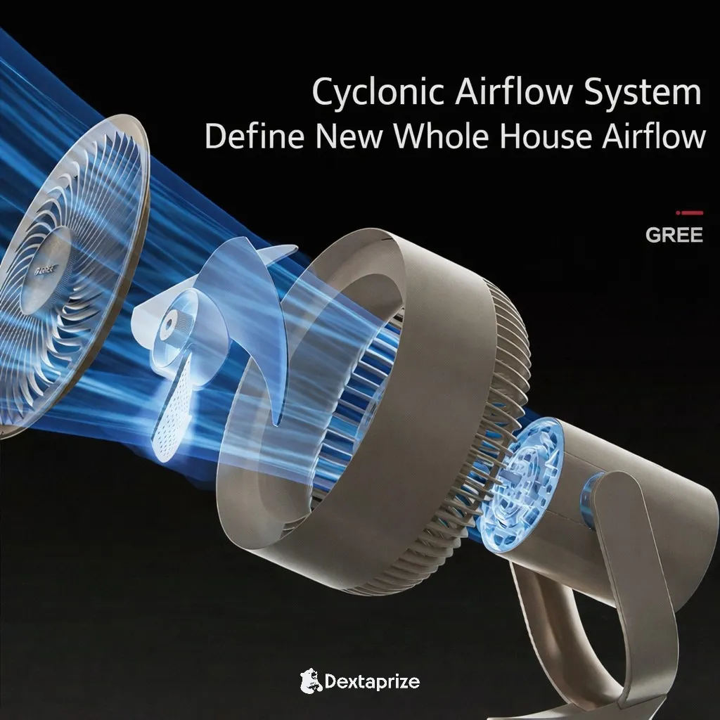Shop the Gree Air Circulator Fan with powerful cyclonic airflow, adjustable height, and ultra-quiet performance. Perfect for bedrooms, offices, and modern homes.