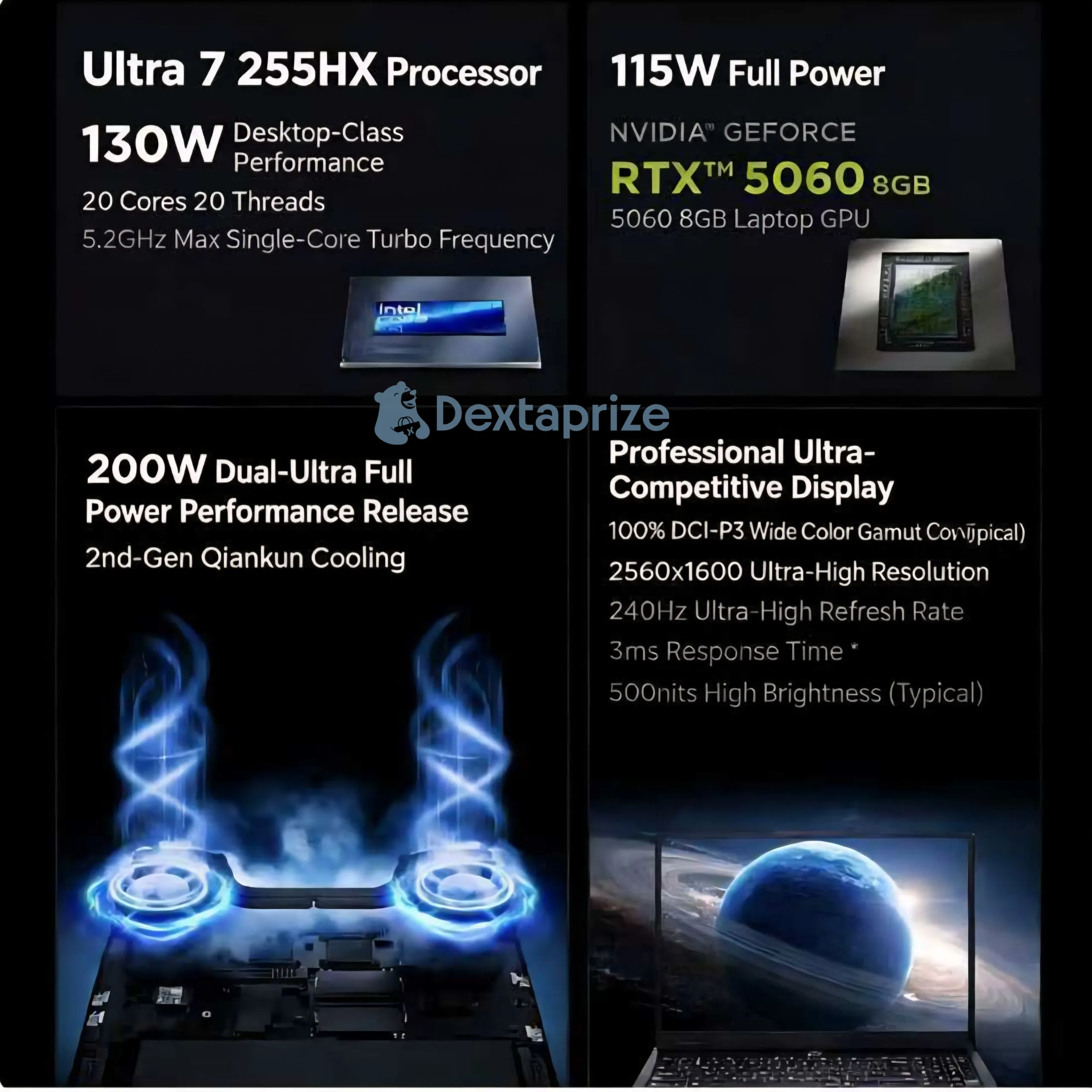 This laptop is equipped with the latest Intel Core Ultra 7 255HX from the Ultra 200HX series, delivering 20-core performance, high turbo speeds up to 5.2GHz, and an impressive 130W performance release for serious workloads.