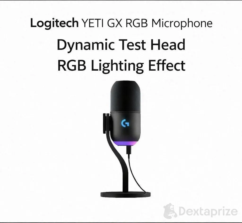 Upgrade your streaming setup with the Logitech Yeti GX RGB Dynamic Gaming Microphone. Featuring clear dynamic audio capture, customizable RGB lighting, USB connectivity, and a cardioid pickup pattern perfect for gamers, streamers, and podcasters.