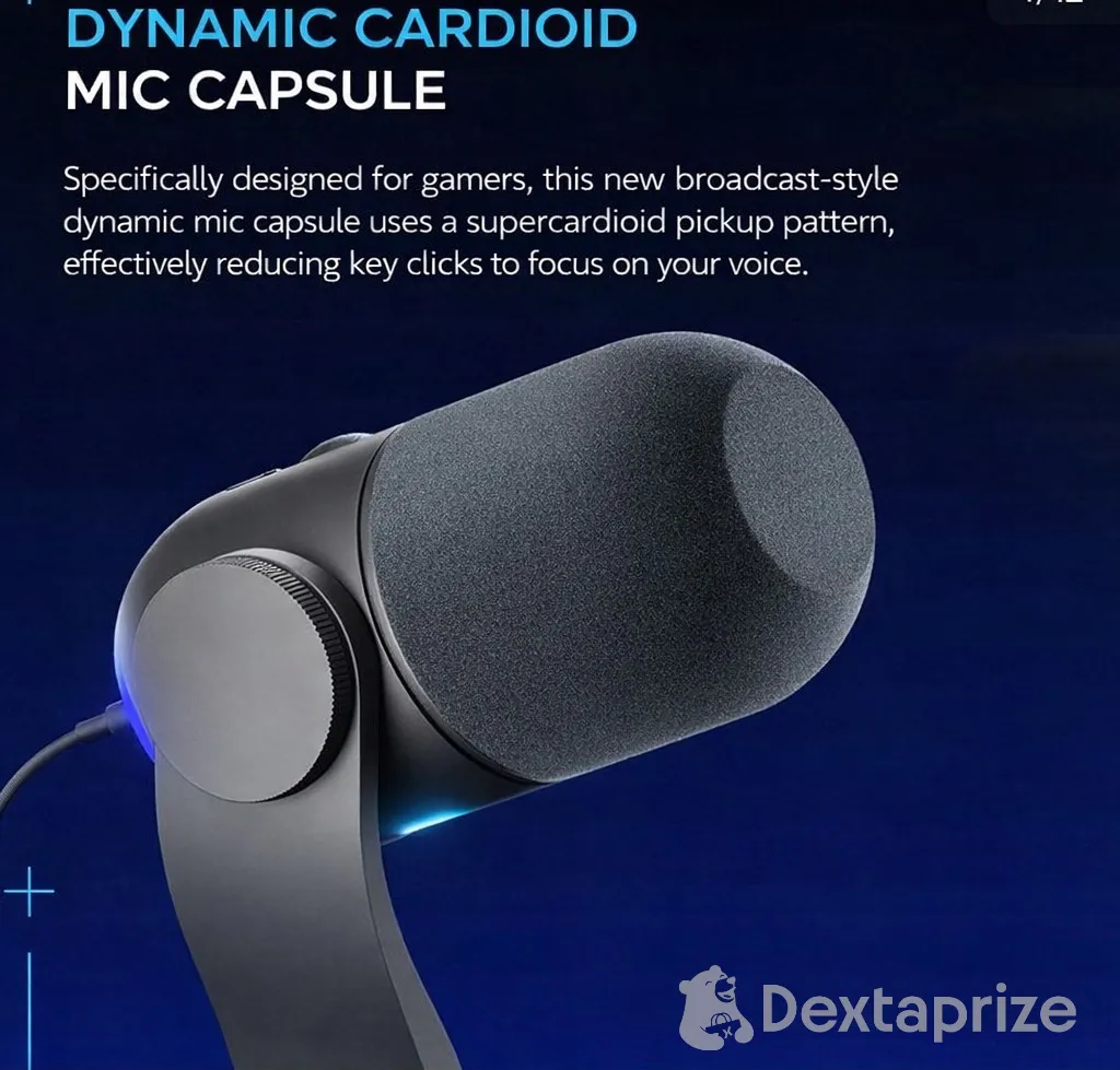 The Logitech Yeti GX RGB Microphone is a premium dynamic gaming microphone designed for streamers, gamers, and content creators who demand clear, professional-quality audio. Built with advanced dynamic capsule technology, it captures your voice with exceptional clarity while minimizing background noise.