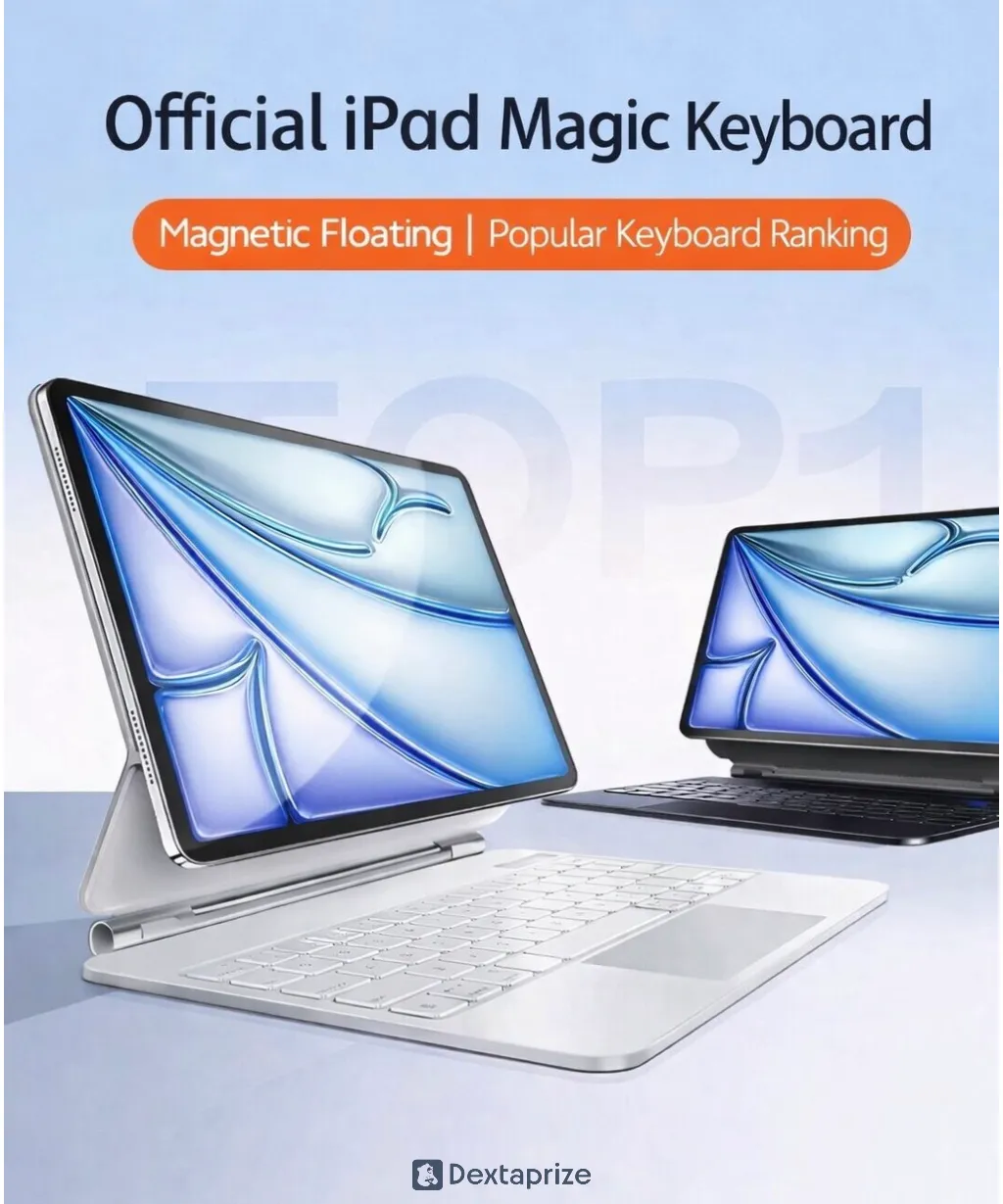 Turn your Apple iPad into a laptop with this magnetic floating keyboard case featuring a trackpad, strong N35 magnets, slim design, and Bluetooth connectivity. Perfect for work, study, and travel.