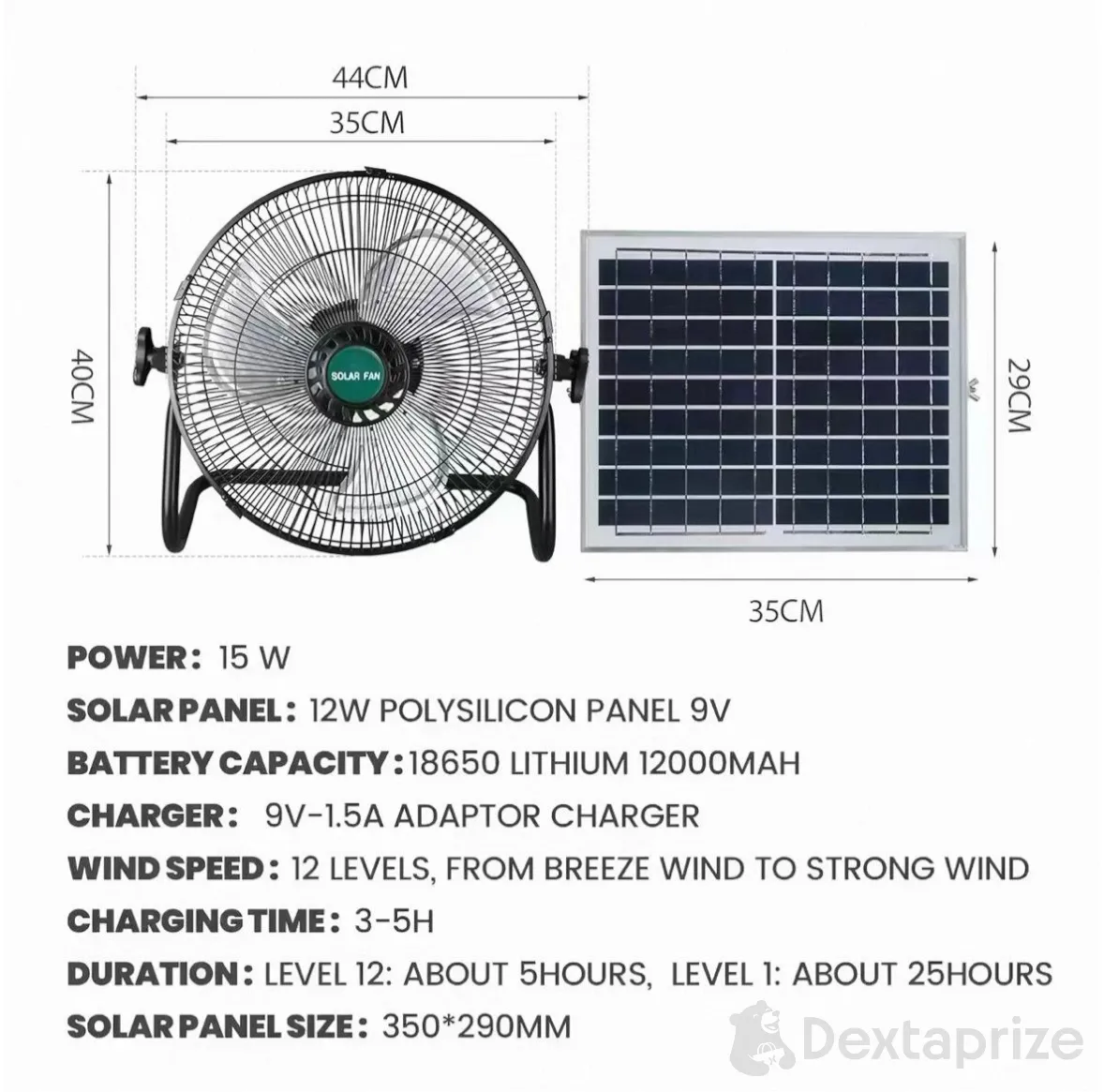 Portable Solar Powered Fan with Dual Power Supply (Solar + Electric)