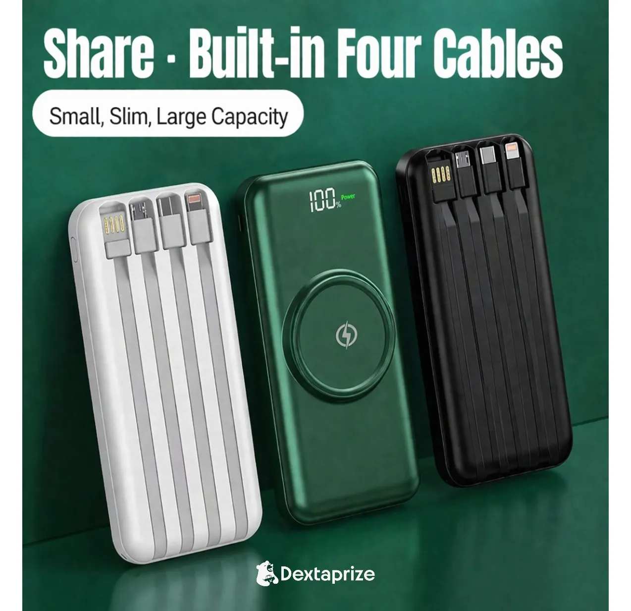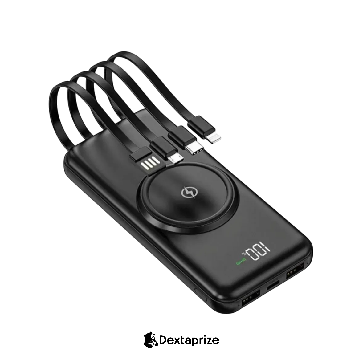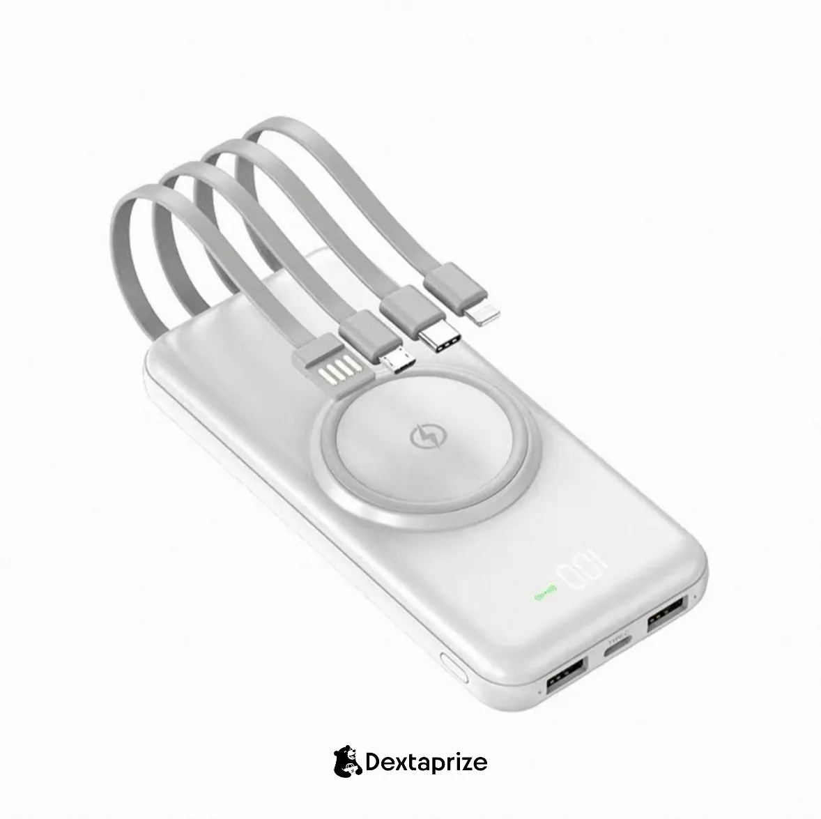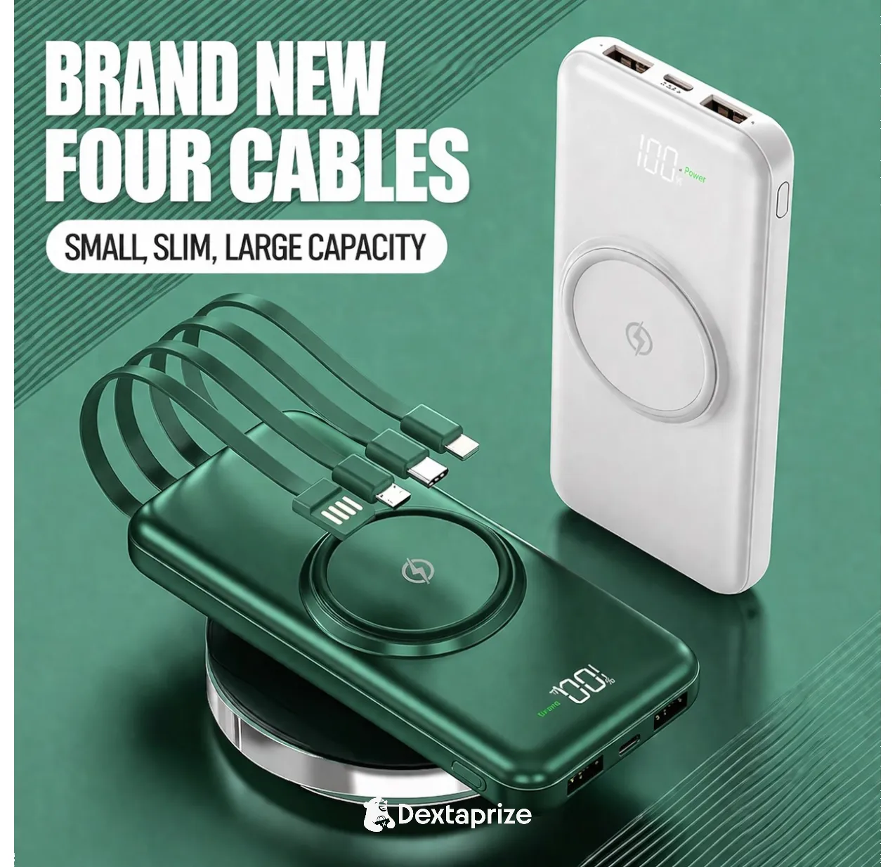 Shop the 4-in-1 wireless power bank with built-in cables for fast, safe charging. Slim, high-capacity portable charger compatible with iPhone, Android, and more.