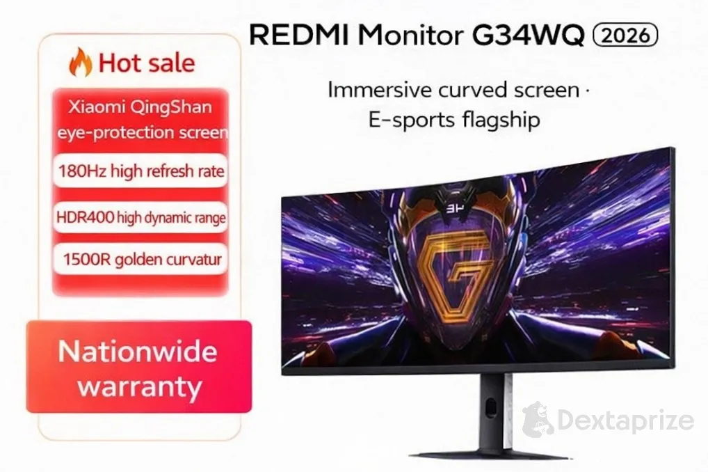 Upgrade your setup with the Redmi Monitor G34WQ (2026). Experience an immersive 34-inch WQHD curved display, a fast 180Hz refresh rate, and 1ms response time. Shop the ultimate e-sports flagship now!