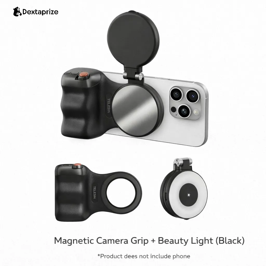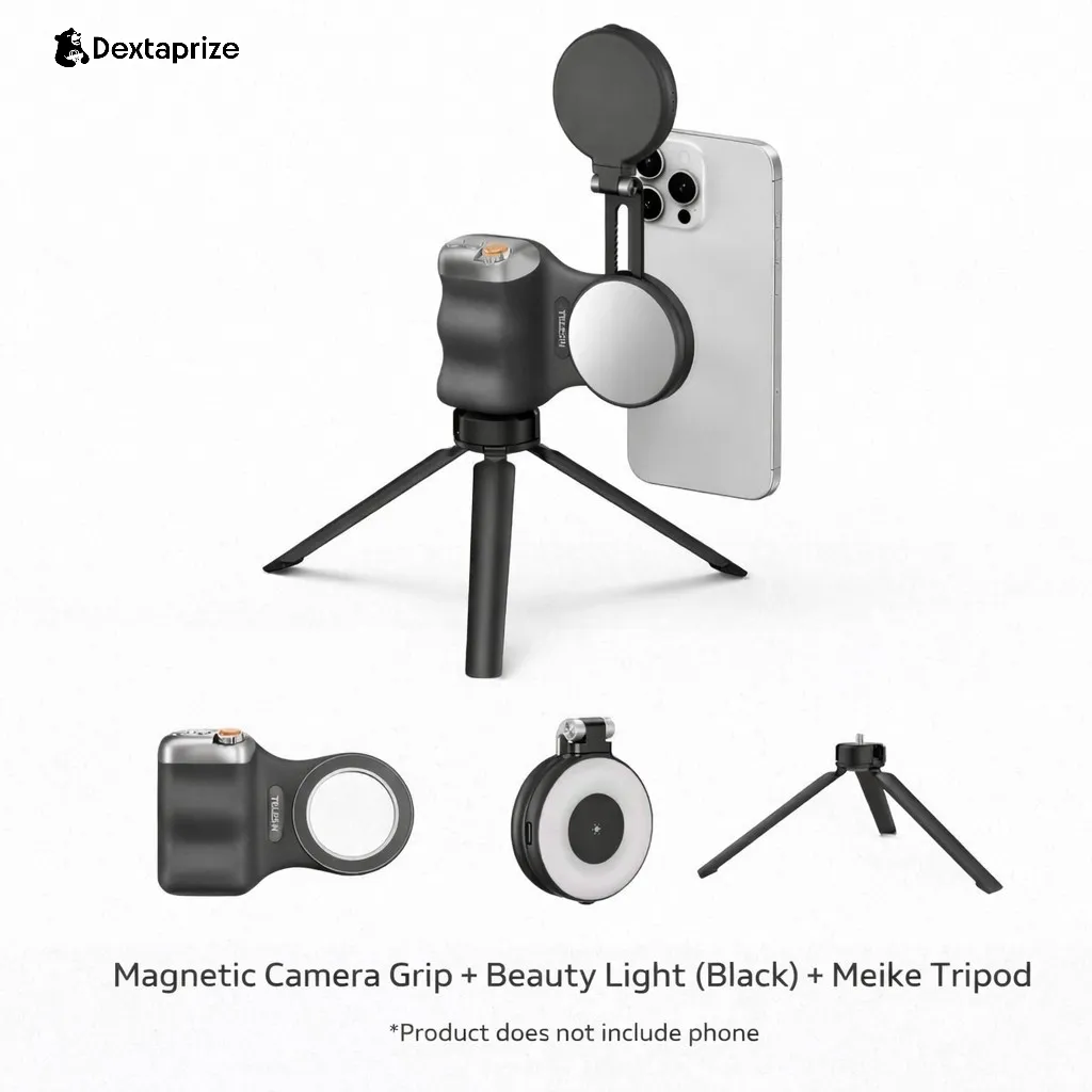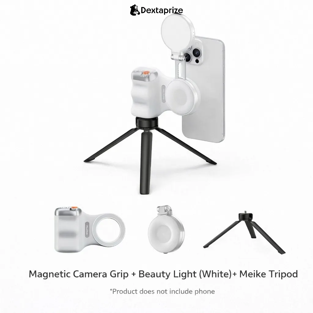 With its magnetic attachment system, ergonomic grip, and optional beauty light + tripod setup, this kit enhances stability, lighting, and control—perfect for content creators, vloggers, and mobile photographers.