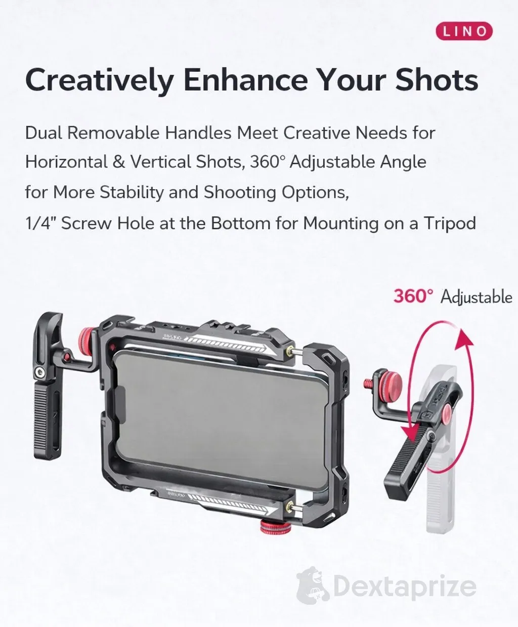 The Ulanzi Lino Rabbit Cage Dual-Hold Mobile Phone Shooting Stand is a versatile smartphone video rig designed for creators who want better stability, improved handling, and expanded accessory support. Built with a stretchable and widely compatible frame, it securely holds a variety of smartphones while providing dual side handles for steadier shooting during vlogging, live streaming, filmmaking, interviews, and mobile content creation.