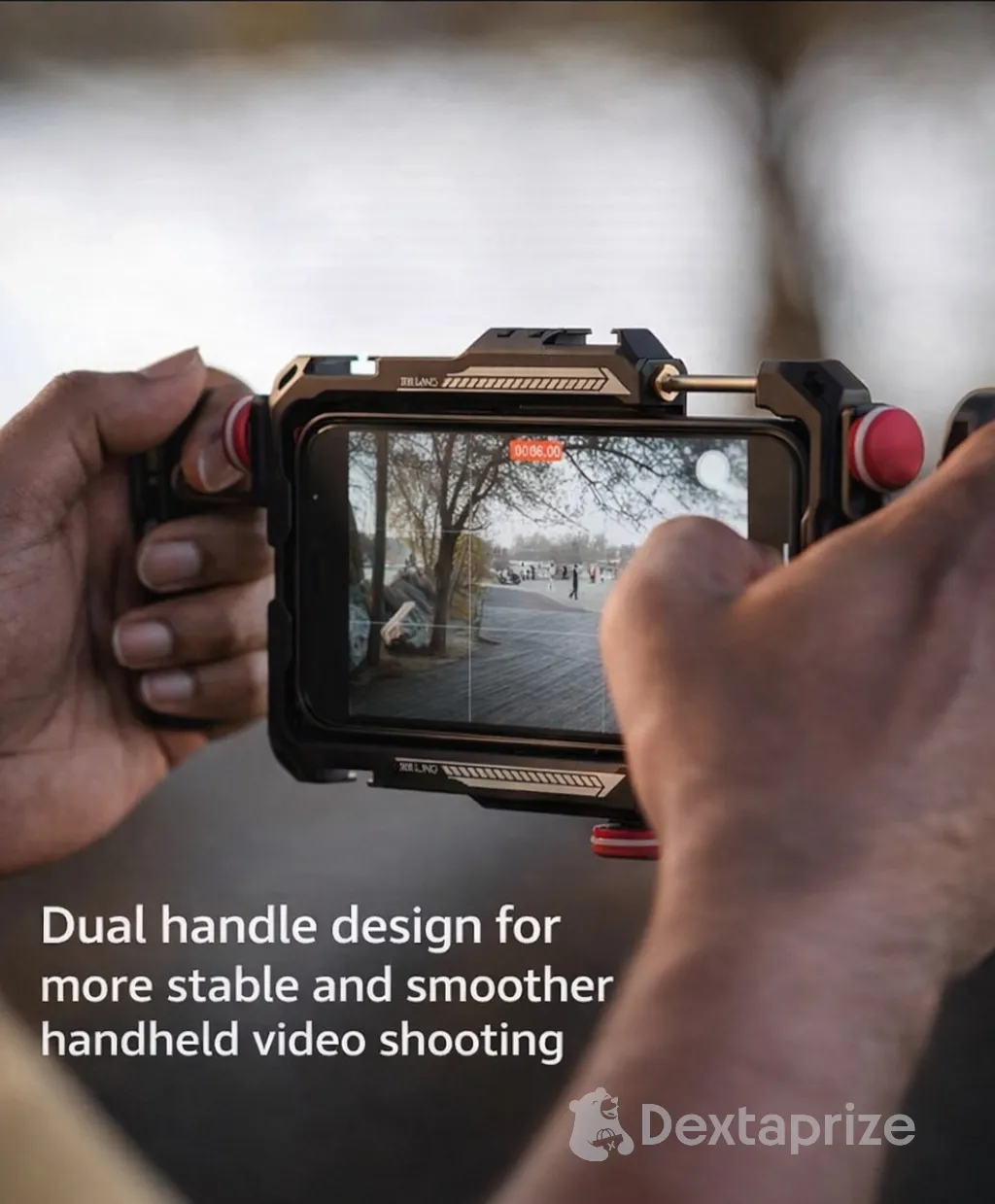 Its cage-style design allows users to mount accessories such as LED fill lights, microphones, and tripods, turning a smartphone into a compact professional recording setup. With a durable metal construction and ergonomic grip design, this rabbit cage is ideal for creators looking for a reliable handheld rig for smoother and more controlled mobile shooting.