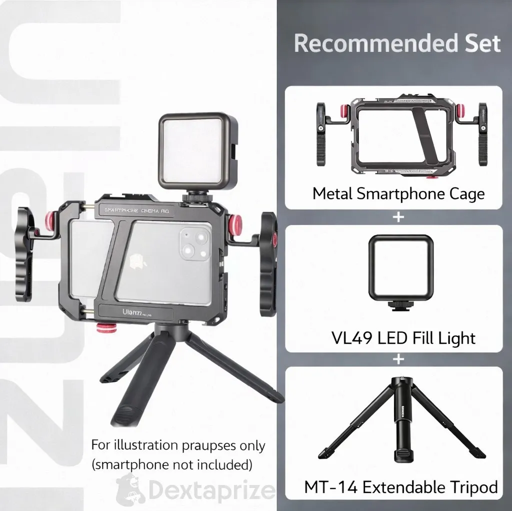 Metal phone cage+VL49 fill light+MT-14 Extendable Tripod