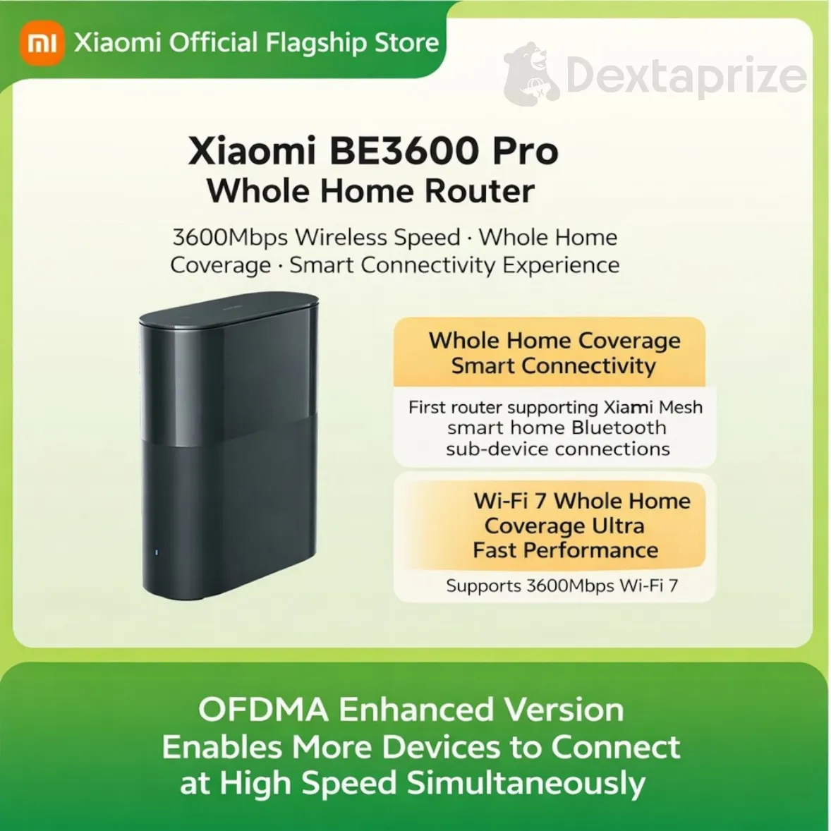 The Xiaomi BE3600 Pro Whole Home Router is a next-generation Wi-Fi 7 mesh system designed to deliver ultra-fast, stable, and seamless internet coverage across your entire home. With blazing speeds of up to 3570Mbps, advanced Multi-Link Operation (MLO), and powerful quad-core processing, it ensures smooth streaming, gaming, and smart home connectivity.