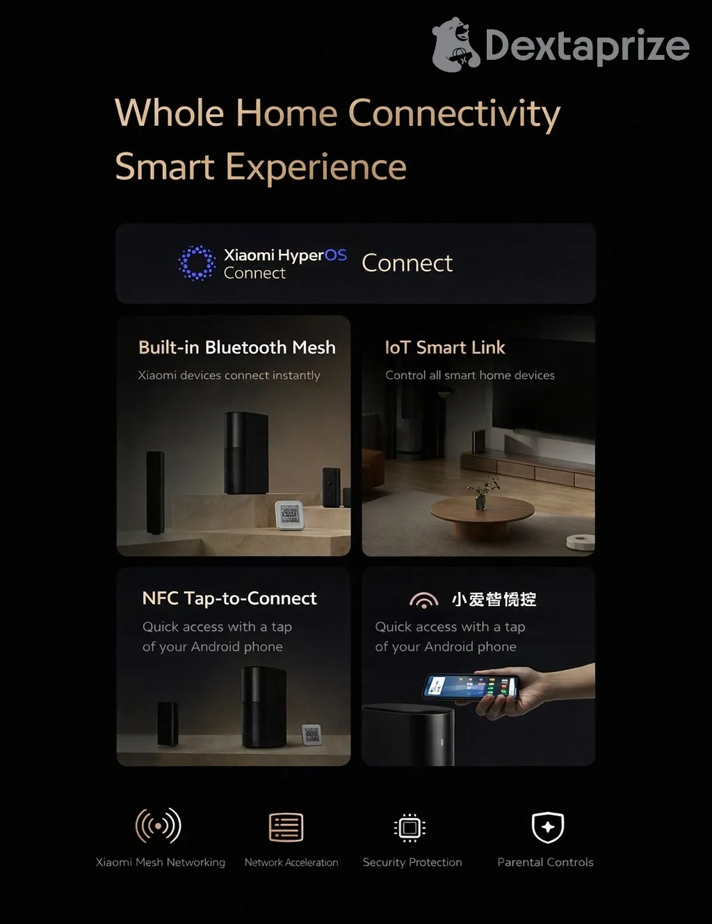 With smart features like NFC quick connect, Bluetooth Mesh gateway integration, and Xiaomi HyperOS support, the BE3600 Pro transforms your home into a fully connected ecosystem. Built-in security features and parental controls provide a safe and reliable network experience for all users.