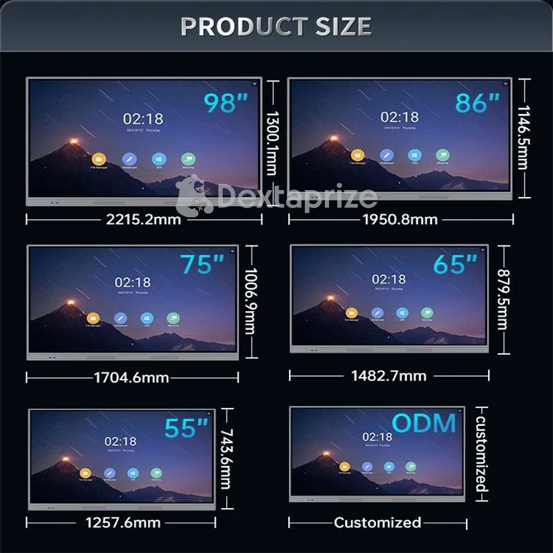 The 4K Smart Interactive Board (32–110”) is a multi-touch teaching and conference display with wireless screen sharing, split-screen mode, and built-in Android system. Perfect for classrooms, offices, and training rooms.