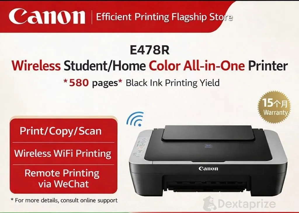 The Canon PIXMA E478WH/E478R Wireless Printer is a compact all-in-one inkjet printer designed for homes, students, and small offices that need reliable printing at a low cost. It combines printing, scanning, and copying functions in a single space-saving device while offering convenient wireless connectivity for easy printing from laptops, smartphones, and tablets.