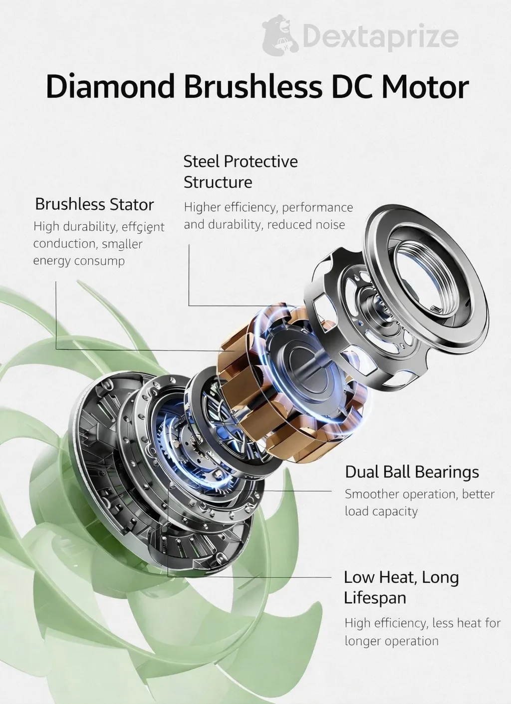 | Energy Saving | Up to 60–80% less power than AC fans |