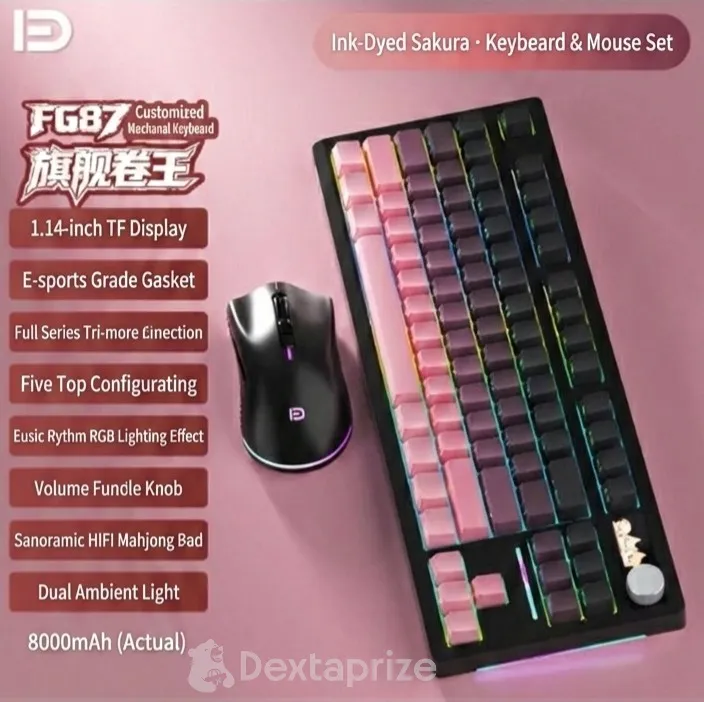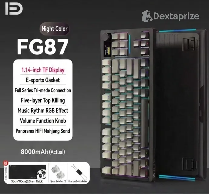 Break through the illusion of standard peripherals with the FG87 Custom Mechanical Keyboard. Built with uncompromising "real materials," this premium 87-key board is designed for those who demand both aesthetics and high performance. Whether you are typing up complex PHP and JavaScript code for your next web development project or diving into late-night gaming sessions, the FG87 delivers a satisfying, tactile experience. It features versatile tri-mode connectivity to seamlessly switch between your workstation and testing devices, a convenient rotary media knob, and a vibrant 1.14-inch TF display that puts system stats or custom animations right at your fingertips