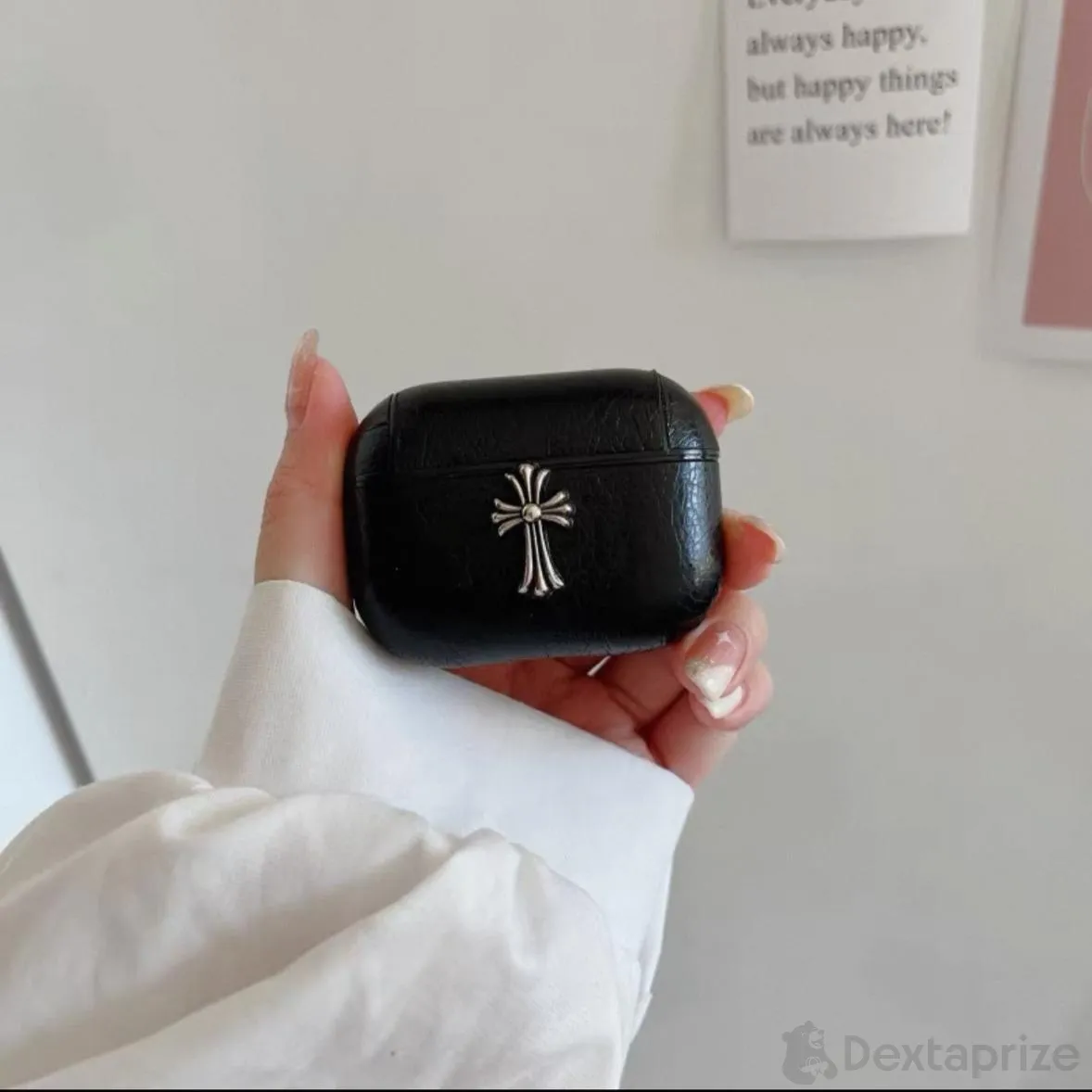 Upgrade your tech with our Gothic Cross Premium Leather AirPods Case. Featuring a striking vintage silver emblem and shock-absorbent textured leather. Shop now!