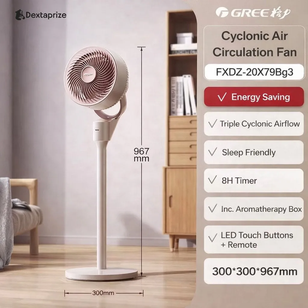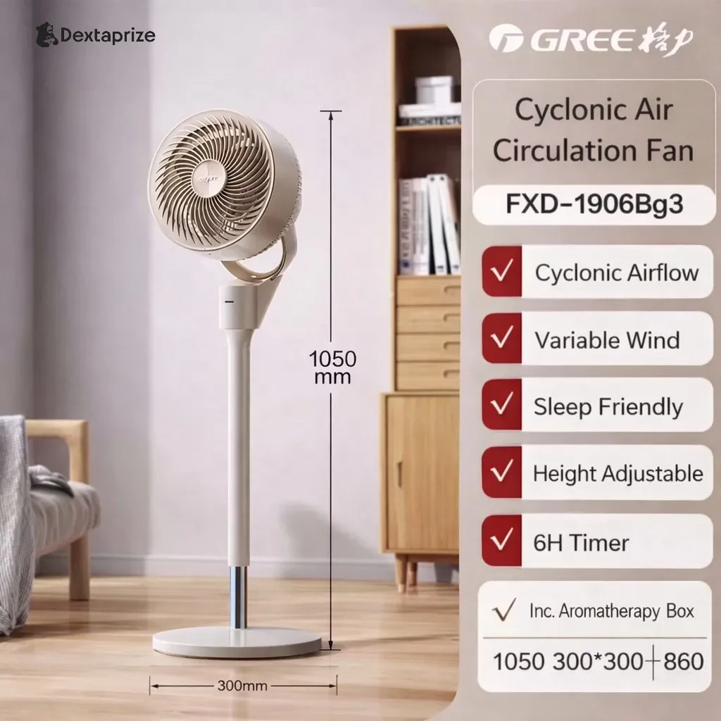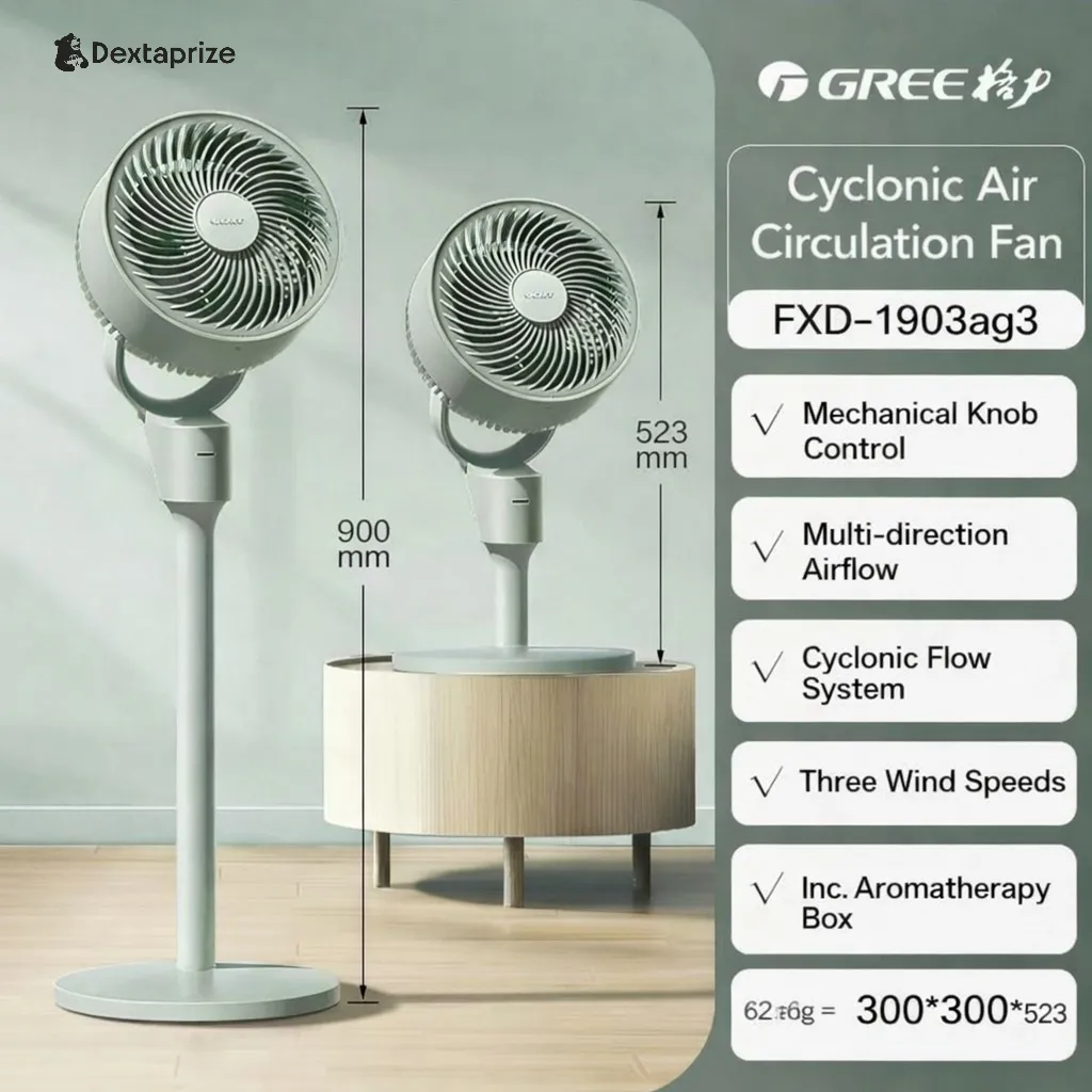 Shop the Gree Air Circulator Fan with powerful cyclonic airflow, adjustable height, and ultra-quiet performance. Perfect for bedrooms, offices, and modern homes.