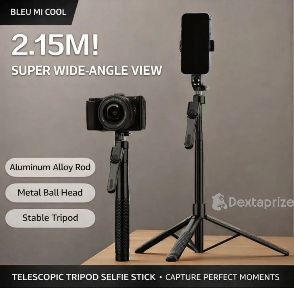 With an impressive 2.15-meter extension, you can shoot wider scenes and creative overhead shots effortlessly. The built-in Bluetooth remote control allows you to take photos hands-free from a distance, while the sturdy tripod base ensures stability on any surface.