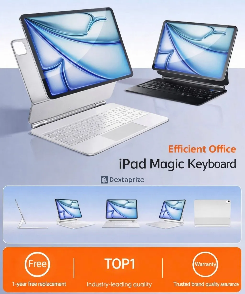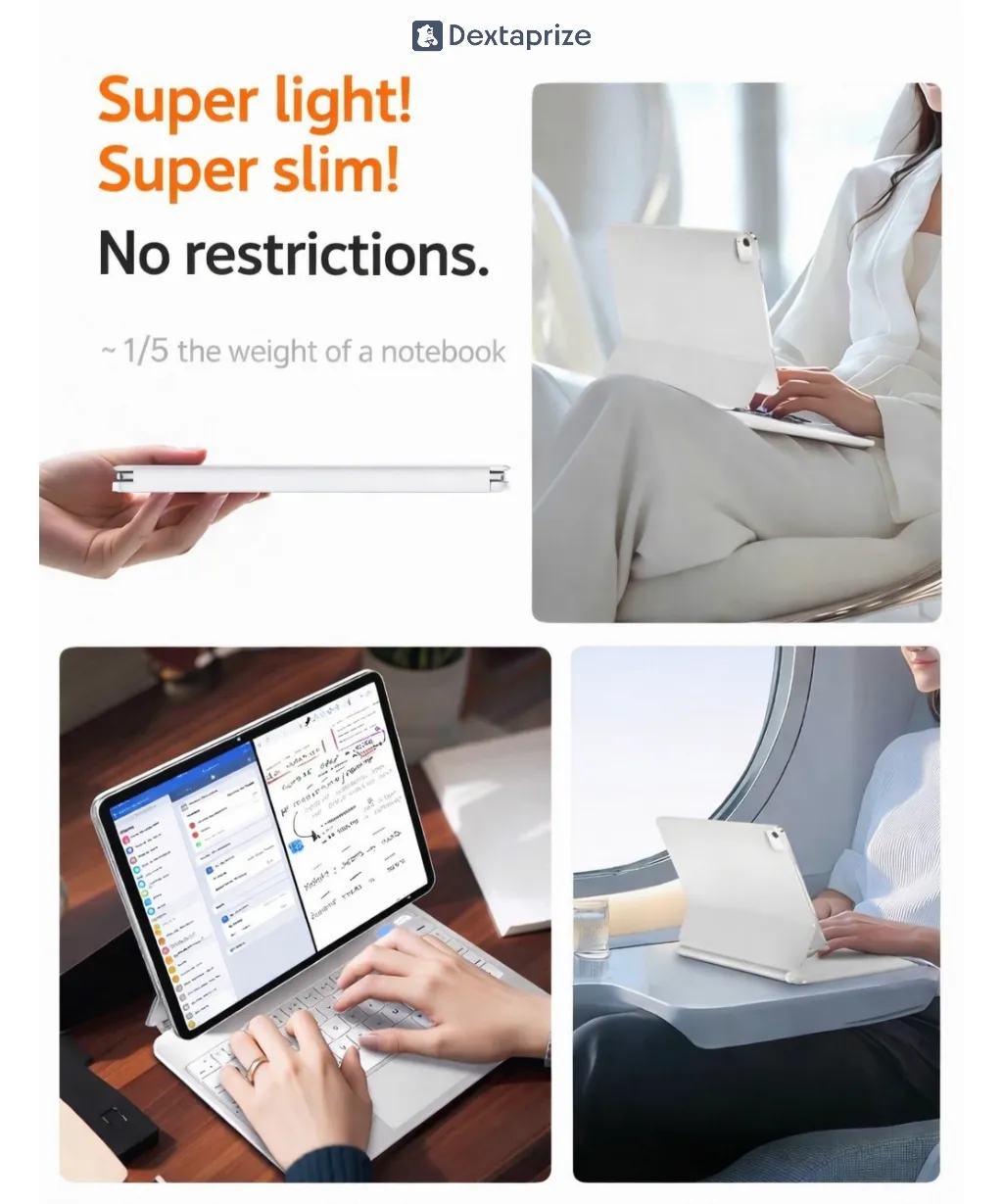 Turn your Apple iPad into a laptop with this magnetic floating keyboard case featuring a trackpad, strong N35 magnets, slim design, and Bluetooth connectivity. Perfect for work, study, and travel.