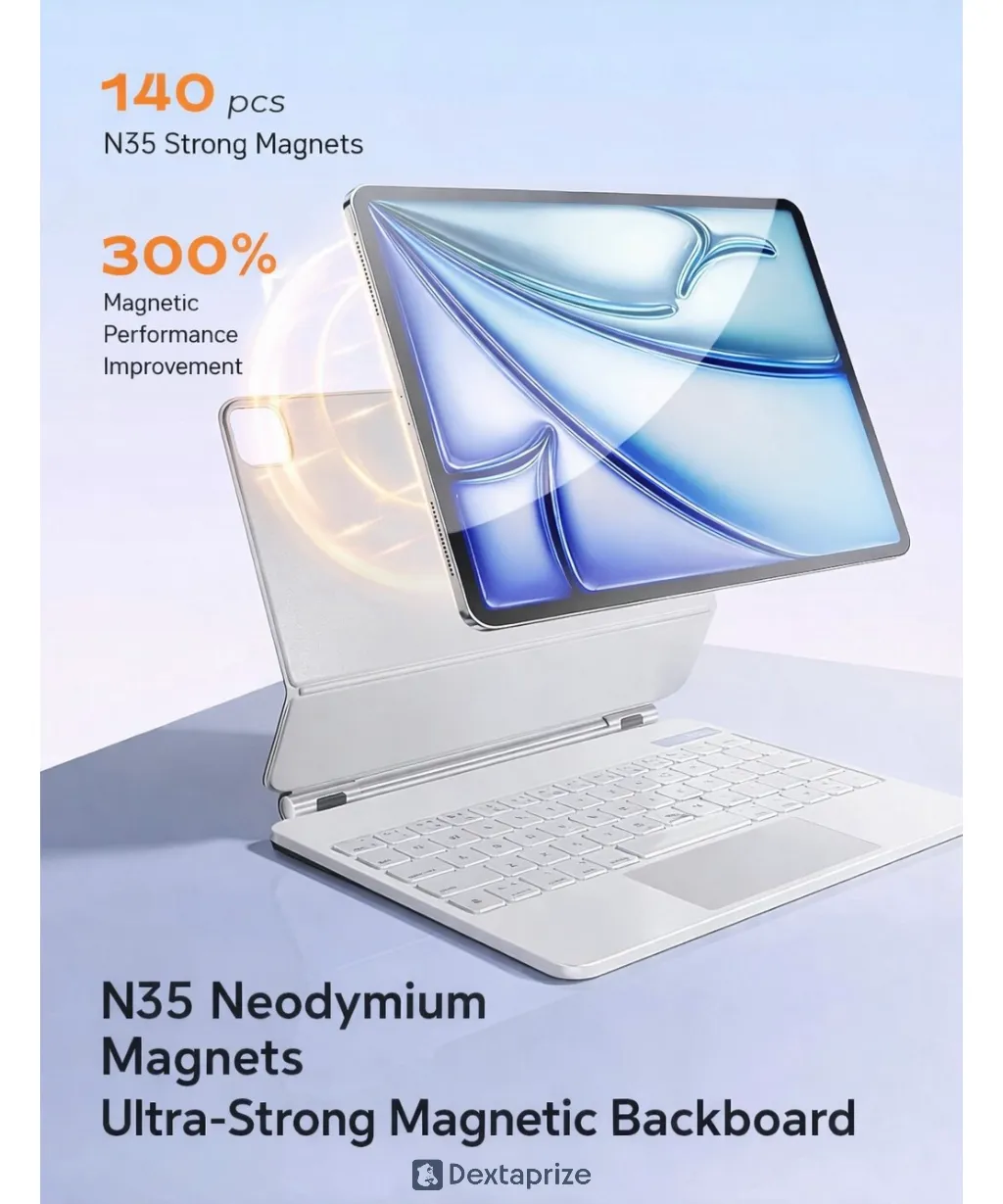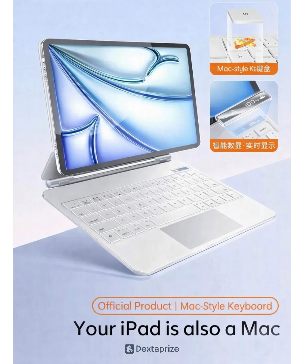 Upgrade your iPad into a powerful laptop-style workstation with this premium magnetic floating keyboard case. Designed with strong N35 neodymium magnets, it securely holds your iPad in a floating position while providing a sleek, Mac-style typing experience.
