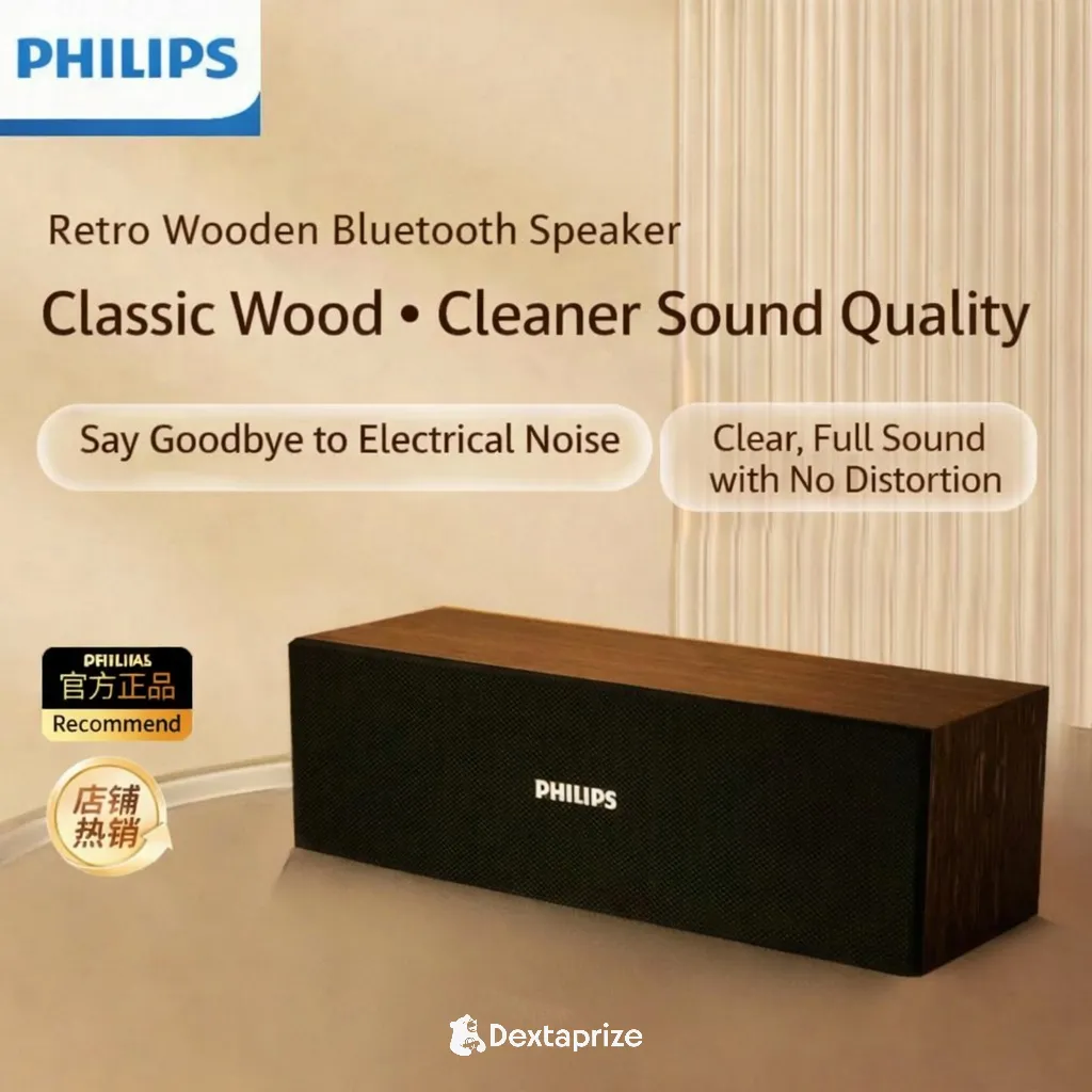 The Philips RetroWood Pro Bluetooth Speaker blends timeless wooden craftsmanship with modern audio technology to deliver a rich, immersive listening experience. Designed for both style and performance, this speaker produces clear highs, deep bass, and distortion-free sound in a compact form.
