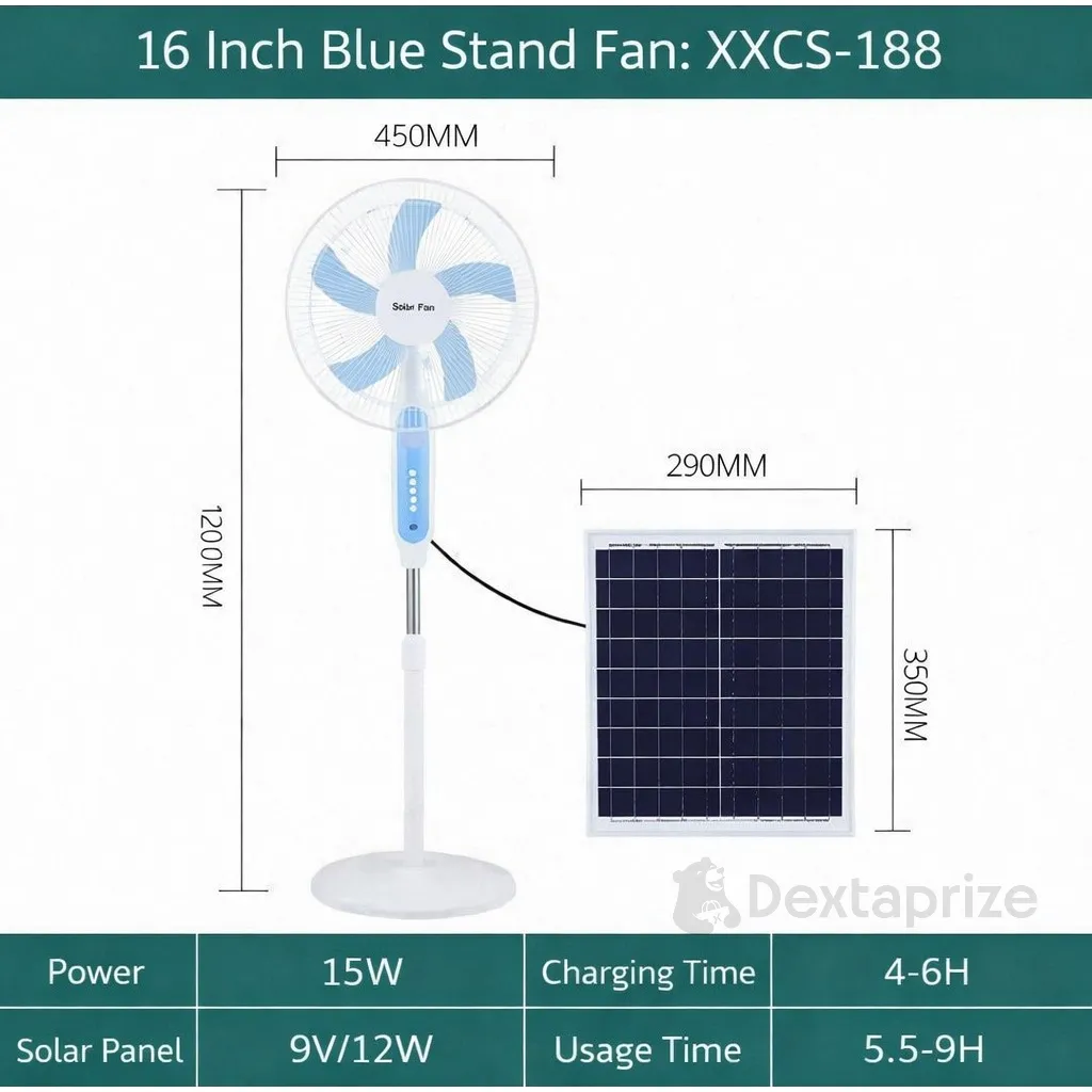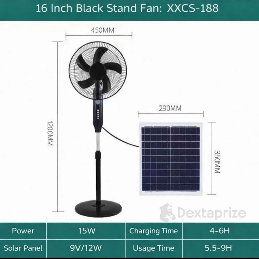 Stay cool anytime, anywhere with this powerful and energy-efficient solar powered fan. Designed for both indoor and outdoor use, this fan combines modern cooling performance with eco-friendly solar technology. Whether you're dealing with power outages or enjoying outdoor activities, the dual power system ensures uninterrupted airflow.