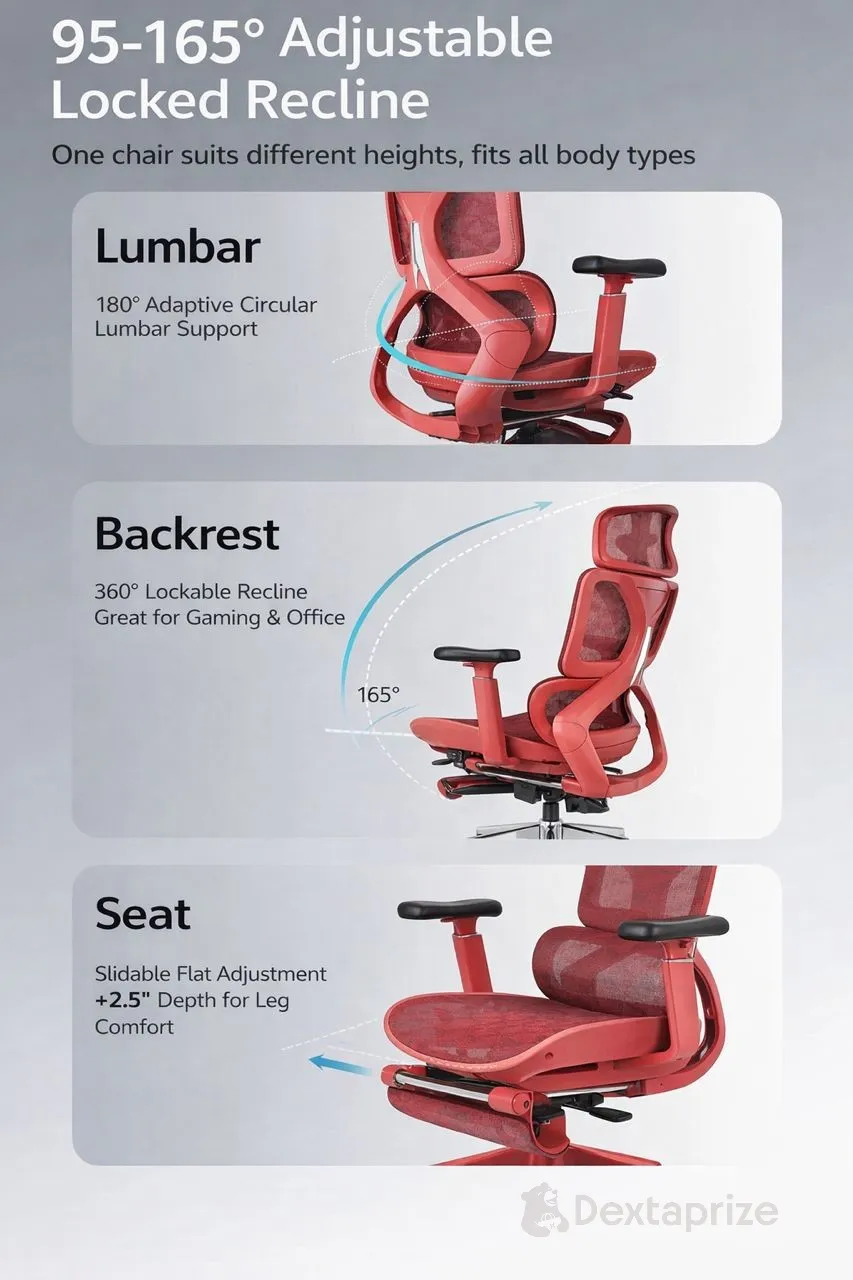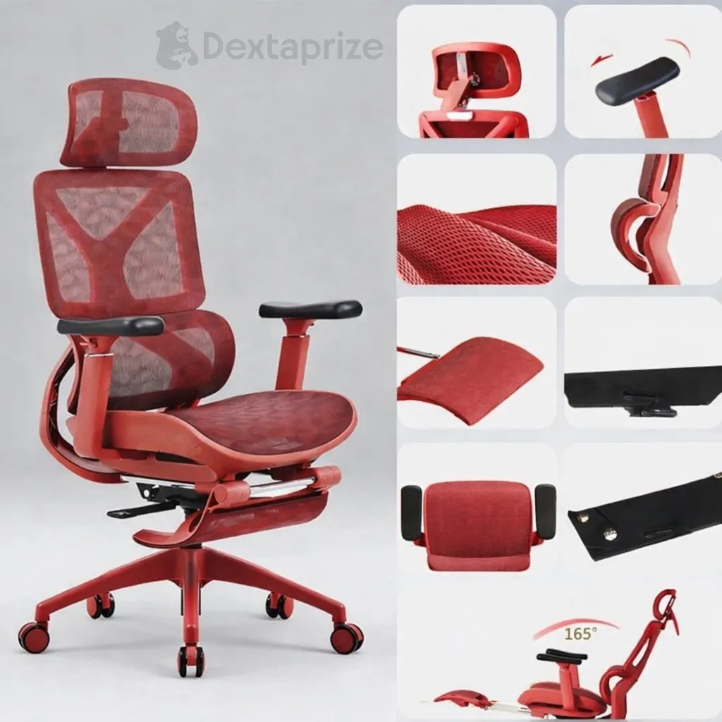 The breathable mesh back keeps you cool, while the curved backrest supports your spine naturally. The 165° reclining function allows you to relax between tasks, and the 4D armrests provide complete customization for perfect arm positioning.