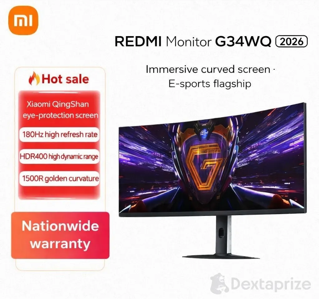 Elevate your gaming and productivity setups with the Redmi Monitor G34WQ 2026. Featuring a massive 34-inch ultrawide display with a 21:9 aspect ratio, this monitor wraps around your field of view with an immersive 1500R curvature.
