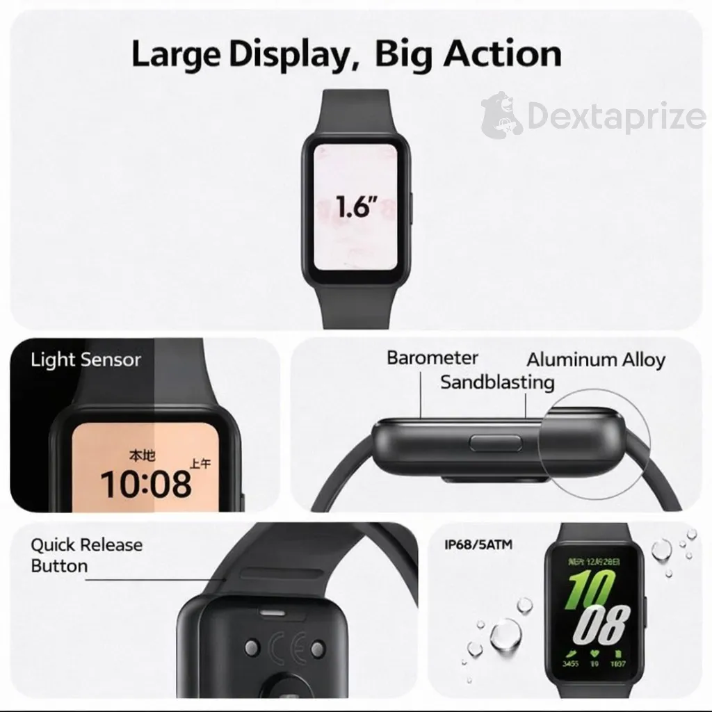 The Samsung Galaxy Fit3 is a sleek and lightweight fitness tracker designed to help you stay active, healthy, and connected throughout the day. Featuring a large 1.6-inch AMOLED display, the Galaxy Fit3 provides clear and vibrant visuals for notifications, workouts, and health insights.