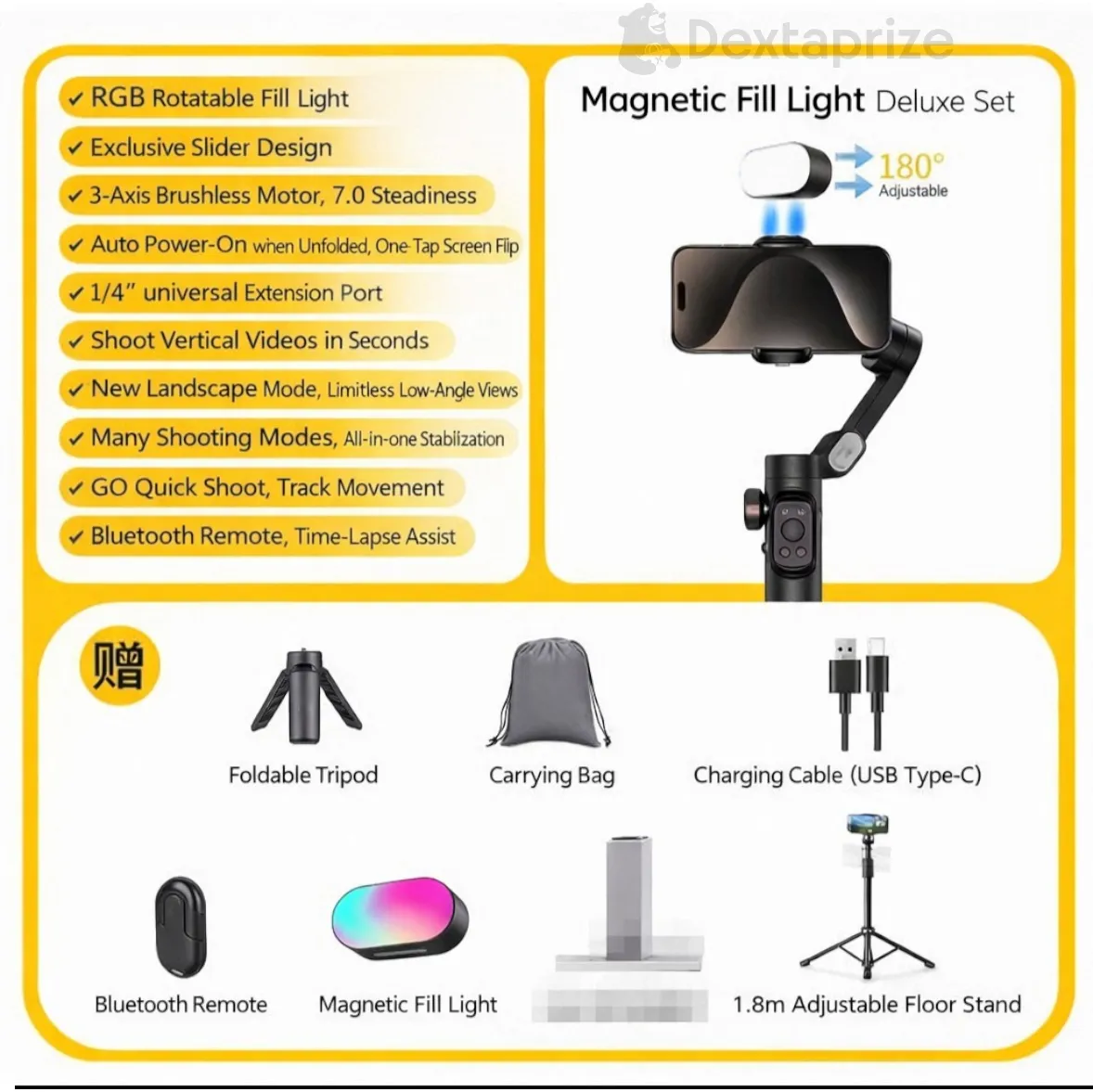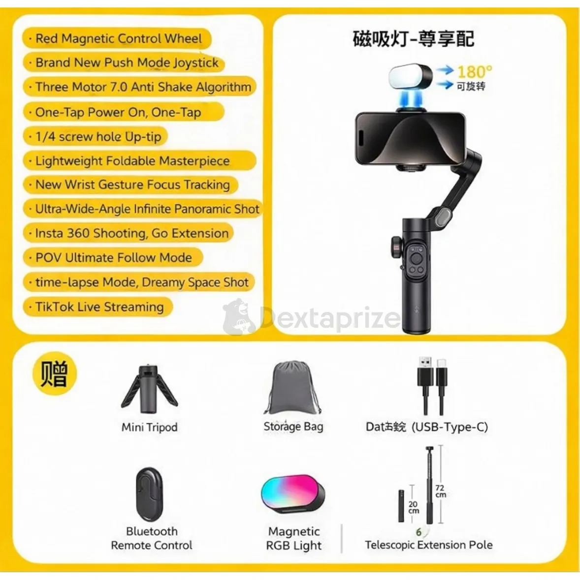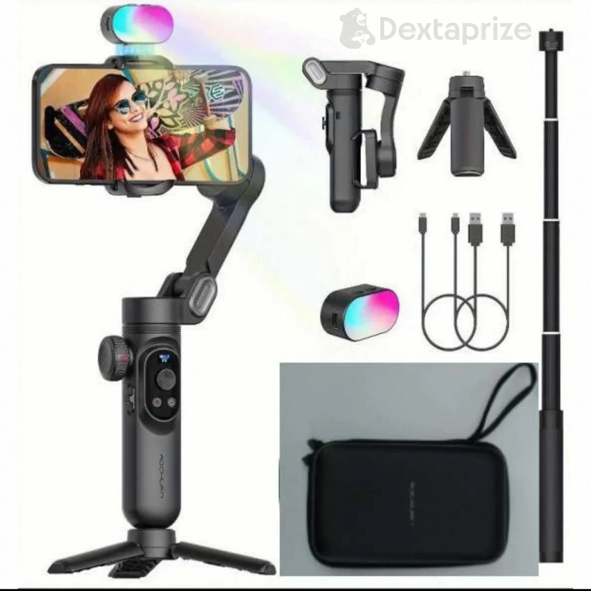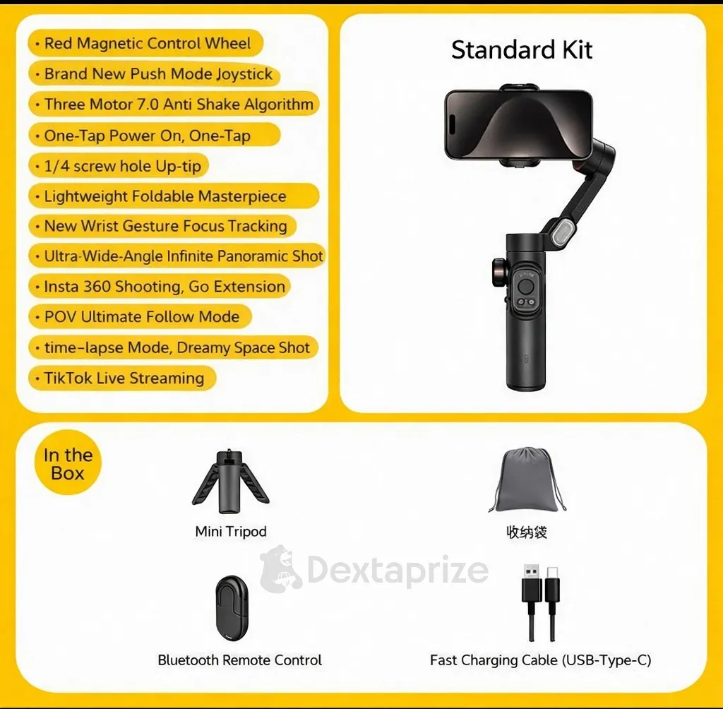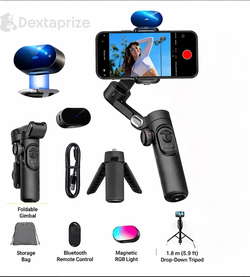 With built-in AI tracking and gesture control, the gimbal intelligently follows your movements, making it perfect for solo shooting, TikTok live streaming, and dynamic video recording. The included magnetic RGB fill light enhances your lighting in any environment, while the Bluetooth remote allows hands-free operation.