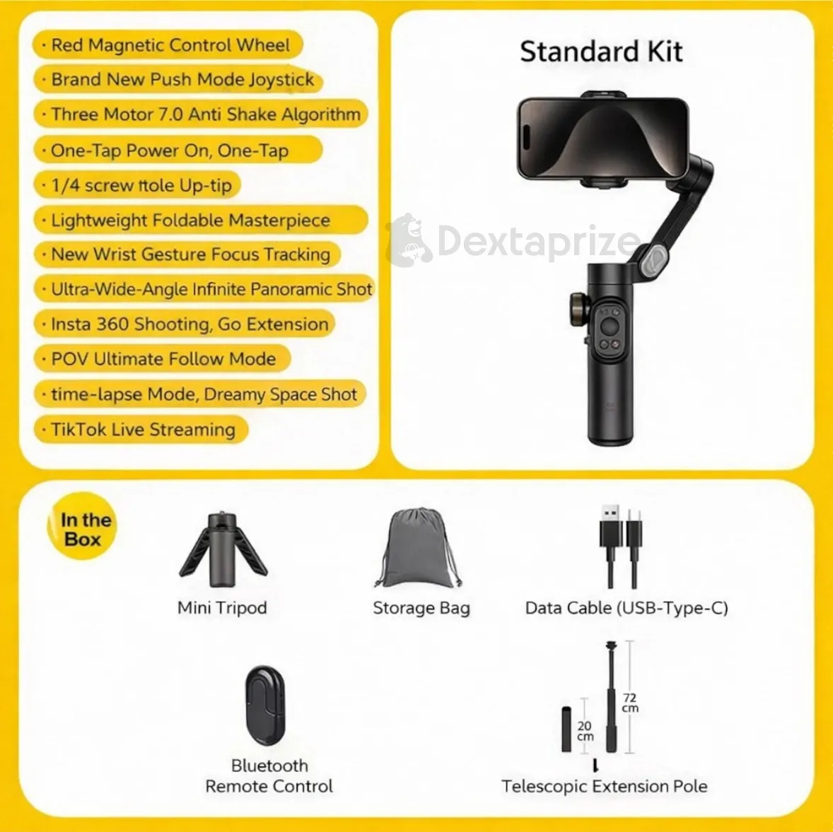 | Stabilization | 3-Axis Motorized Gimbal (7.0 Anti-Shake Algorithm) |