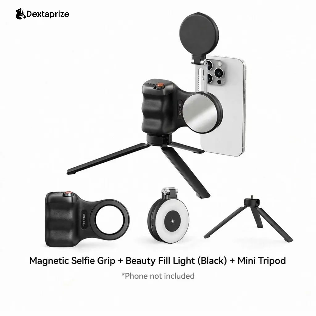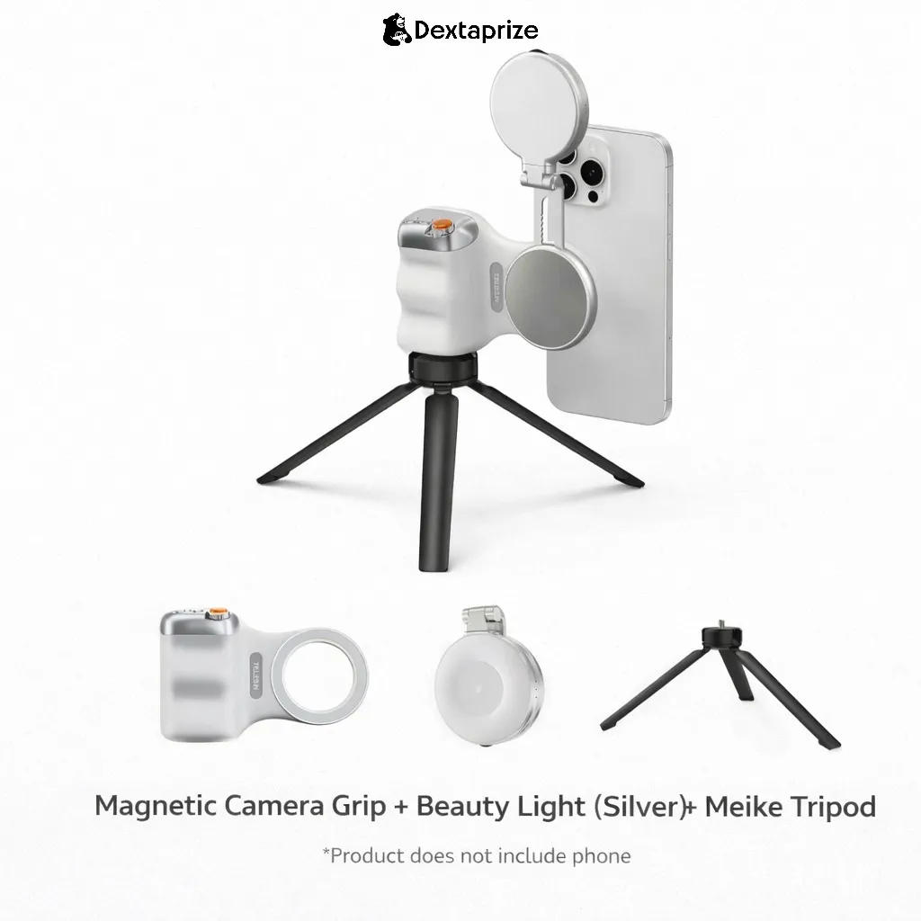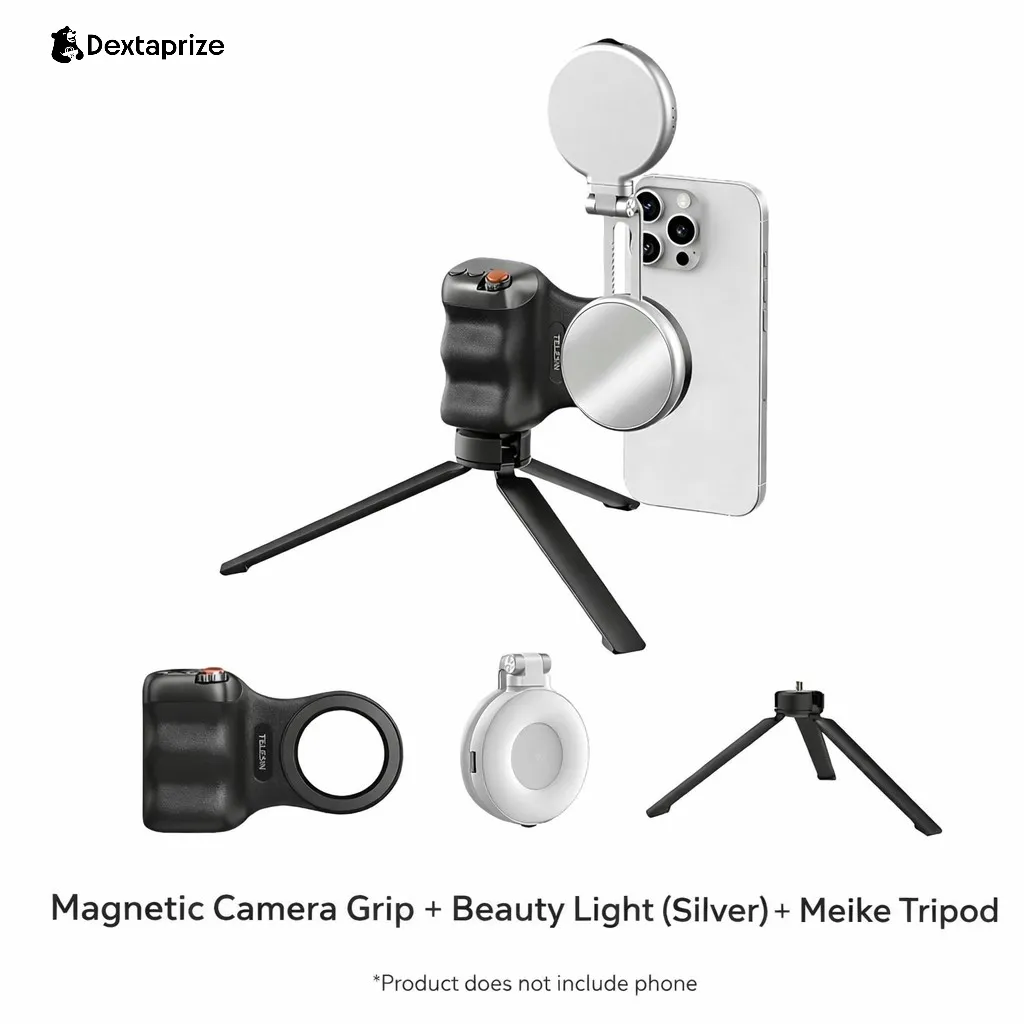 With its magnetic attachment system, ergonomic grip, and optional beauty light + tripod setup, this kit enhances stability, lighting, and control—perfect for content creators, vloggers, and mobile photographers.