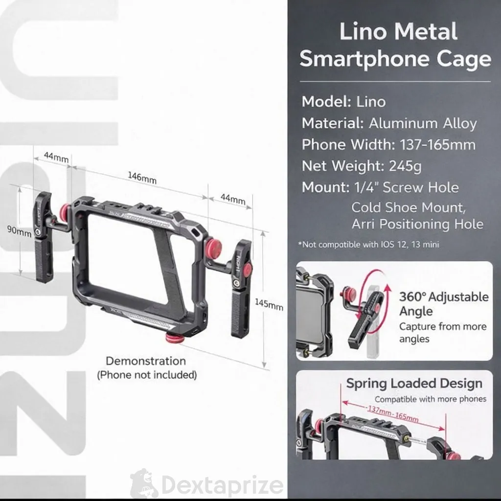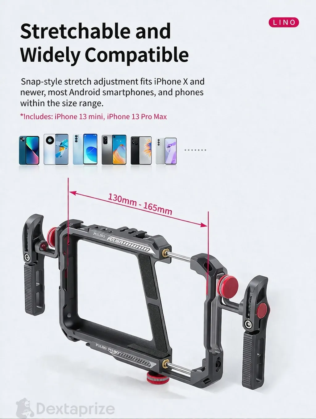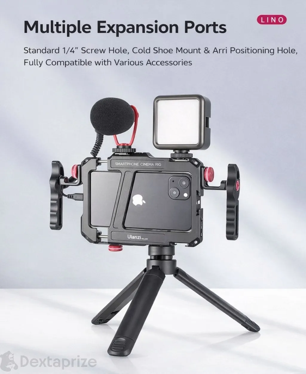 The Ulanzi Lino Rabbit Cage Dual-Hold Mobile Phone Shooting Stand is a versatile smartphone video rig designed for creators who want better stability, improved handling, and expanded accessory support. Built with a stretchable and widely compatible frame, it securely holds a variety of smartphones while providing dual side handles for steadier shooting during vlogging, live streaming, filmmaking, interviews, and mobile content creation.