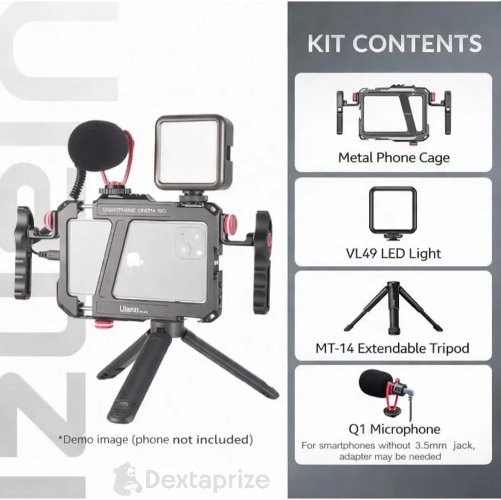 Metal phone cage+VL49 fill light+MT-14 Extendable Tripod+Q1 microphone