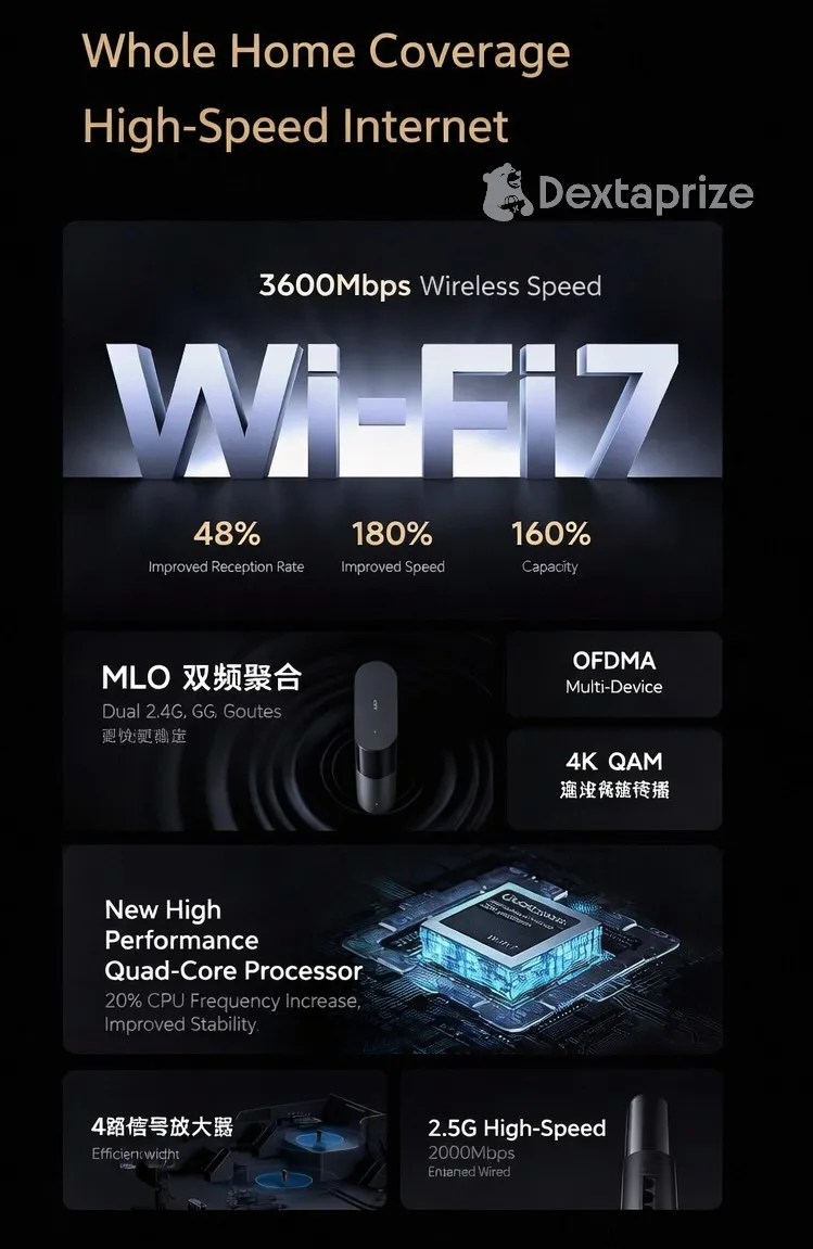 Upgrade your home network with the Xiaomi BE3600 Pro WiFi 7 Mesh Router. Enjoy ultra-fast 3570Mbps speeds, seamless whole-home coverage, smart IoT integration, and advanced security for a powerful and reliable internet experience.